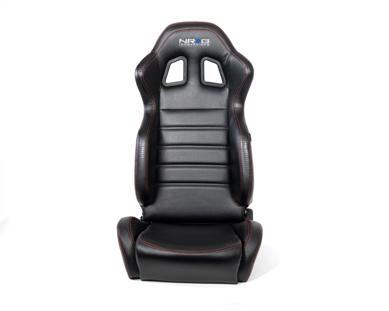 Superior Driving Comfort. Upgrade your driving experience with the NRG Innovations Reclinable Racing Seats, designed to provide superior comfort and lateral support. These seats feature an ergonomic design that holds the driver securely, reducing fatigue during aggressive driving. The black cloth finish with red stitching adds a sleek, race-inspired look to any interior.