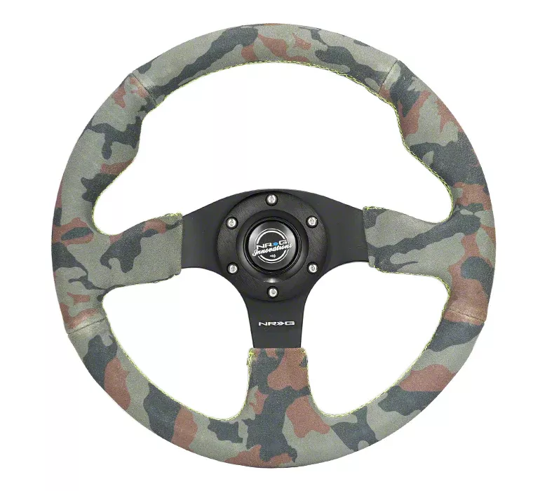 NRG Innovations 320mm Racing Steering Wheel; Camo Suede with Green Stitching