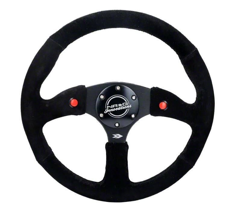 NRG Innovations 350mm 2-Inch Deep Dual Button Steering Wheel; Black Suede (Universal; Some Adaptation May Be Required)