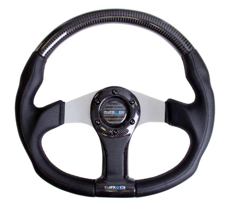 NRG Innovations 350mm Oval Shape Flat Bottom Steering Wheel; Carbon Silver (Universal; Some Adaptation May Be Required)