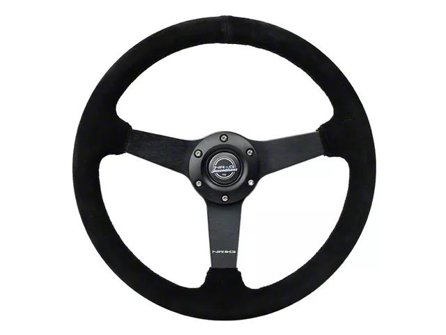 Construction and Appearance. Built for strength and comfort, this steering wheel features a black suede finish that offers superior grip and a premium feel. It’s constructed to be both lightweight and durable, with double-riveted spokes enhancing its structural integrity for demanding driving conditions.