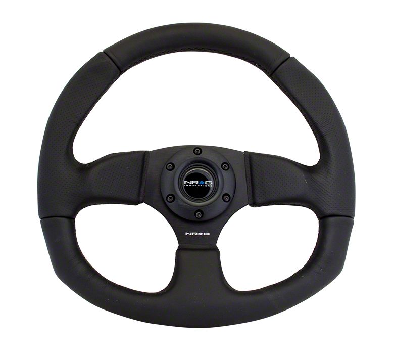 Application. This NRG Innovations Flat Bottom Steering Wheel features universal fitment, though some adaptation may be required for proper installation.
