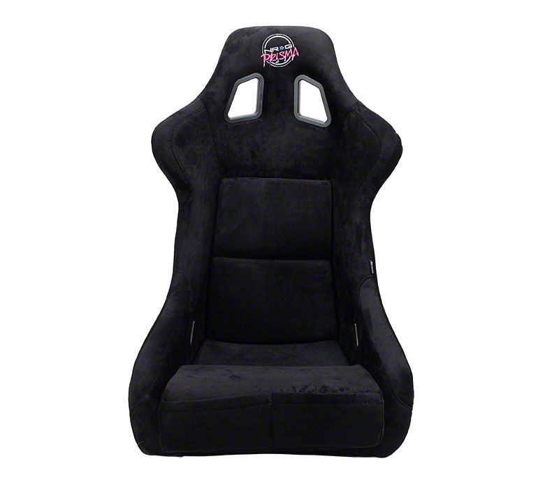Construction and Appearance. Crafted with high-quality Black Alcantara upholstery, the Prisma Large Bucket Seat offers a luxurious feel with enhanced durability. The seat features reinforced fiberglass construction, ensuring a lightweight yet strong frame for optimal safety. It also includes elegant Prisma embroidery and high-density foam cushioning for a comfortable ride.