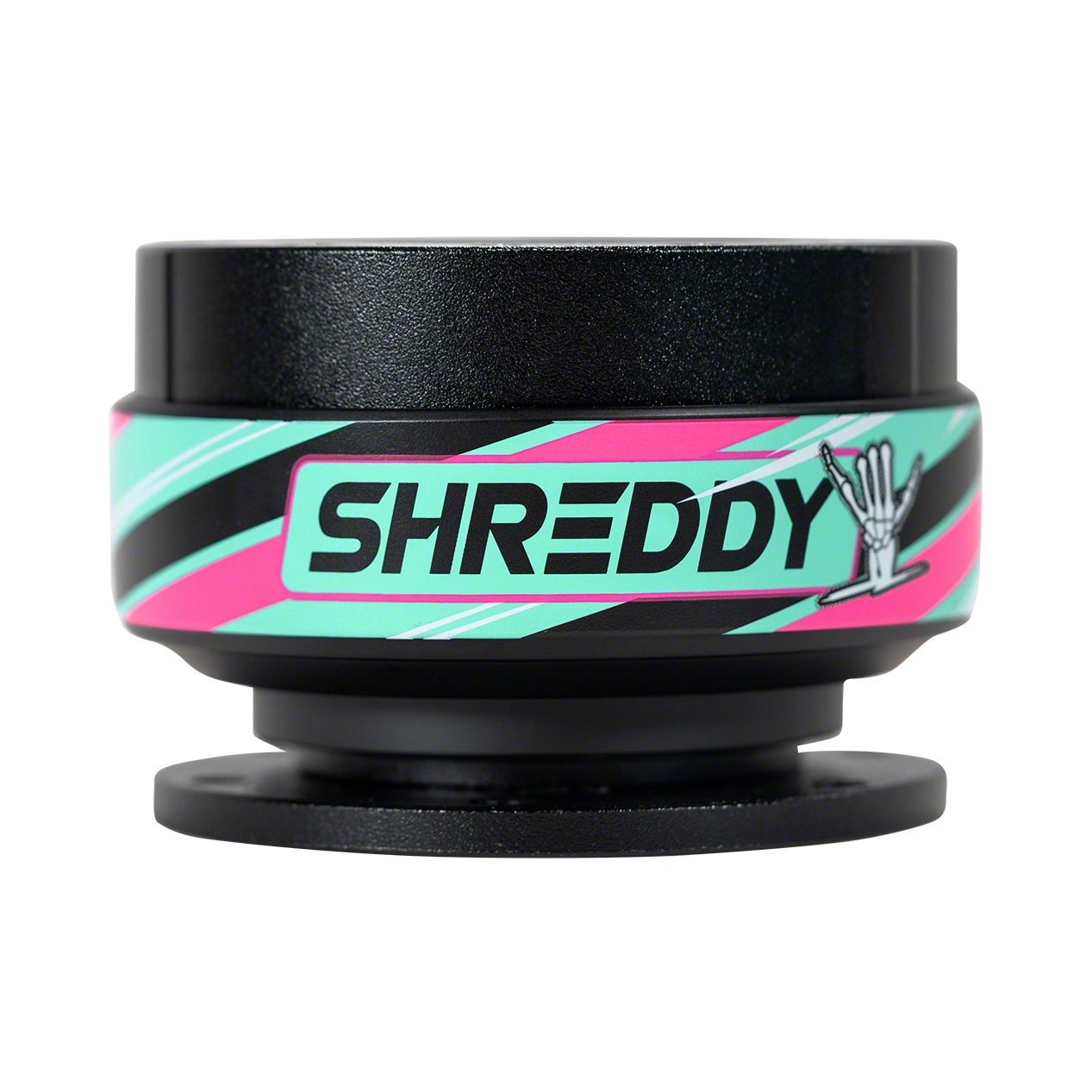 Construction and Appearance. Engineered from lightweight aircraft-grade aluminum, this Gen 2 quick release hub is designed for strength, durability, and ease of use. Raised sections help prevent scratching and stretching of the hub or steering wheel surfaces. The matte black finish pairs perfectly with the vibrant Shreddy-themed ring, adding a custom touch to any build. It meets SFI 42.1 spec for motorsport-grade quality and safety compliance.