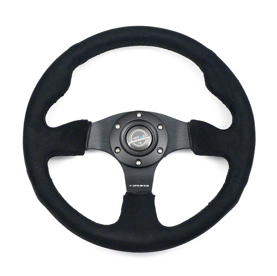 Race-Ready Control. The NRG Innovations Racing Steering Wheel is designed for precision and performance. With its 320mm flat bottom structure and Alcantara-wrapped grip, this wheel delivers responsive handling and superior control during aggressive driving or track days. Whether you're racing or cruising, this steering wheel offers a confident and stylish driving experience.