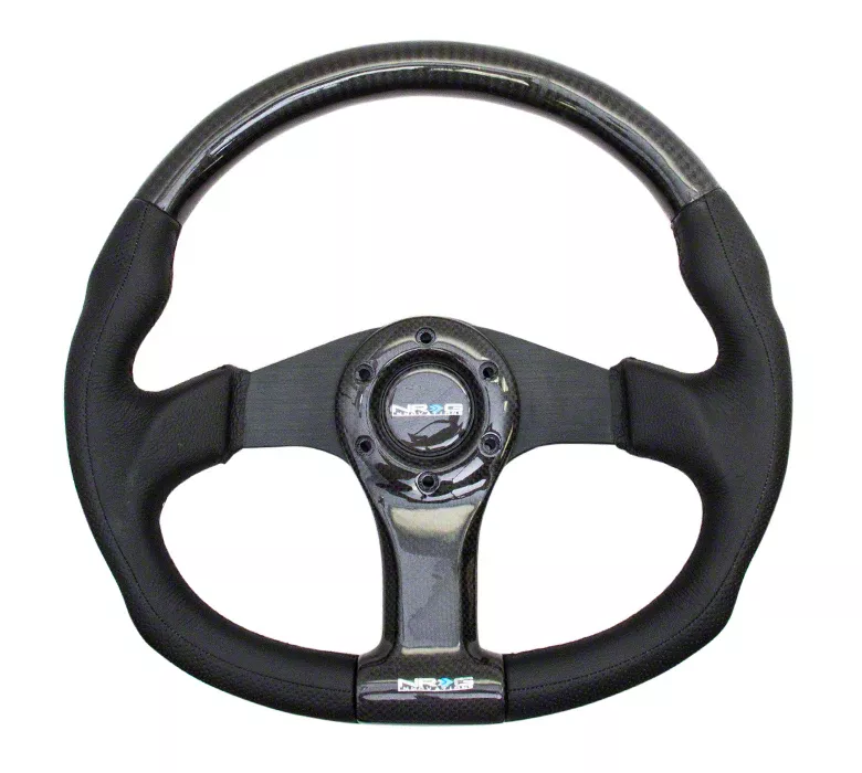 Construction and Appearance. Crafted with a robust carbon black finish, this steering wheel not only looks sleek but also resists wear over time. The 350mm size with an oval-shaped flat bottom enhances both comfort and response, providing a modern edge to your interior setup. Its smooth surface and thoughtfully contoured design make it a standout choice for any performance-oriented vehicle.