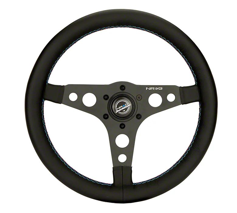 NRG Innovations 350mm Steering Wheel; Black Leather with M Color Stitching