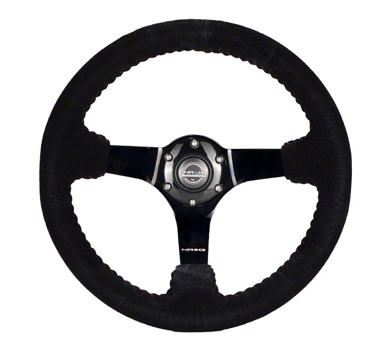Application. NRG Innovations 350mm Steering Wheel; Black Suede with Red Stitching fits universal applications; some adaptation may be required.