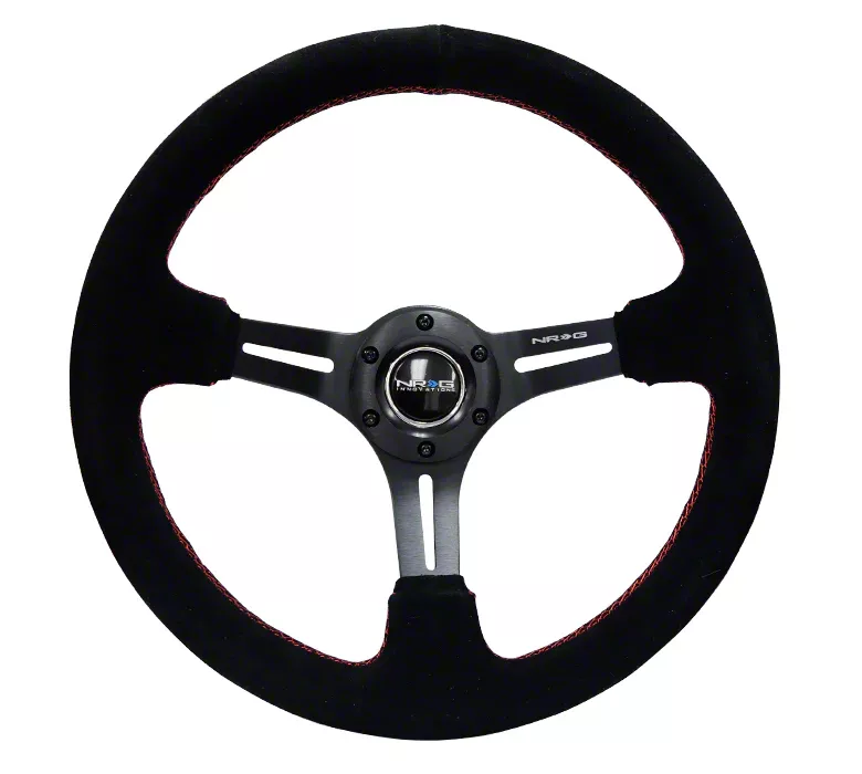 NRG Innovations 350mm 3-Inch Deep Dish Steering Wheel; Black Suede with Red Stitching (Universal; Some Adaptation May Be Required)