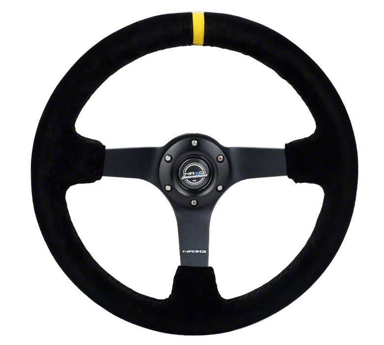 NRG Innovations 350mm 3-Inch Deep Dish Steering Wheel; Black Suede with Yellow Center Mark