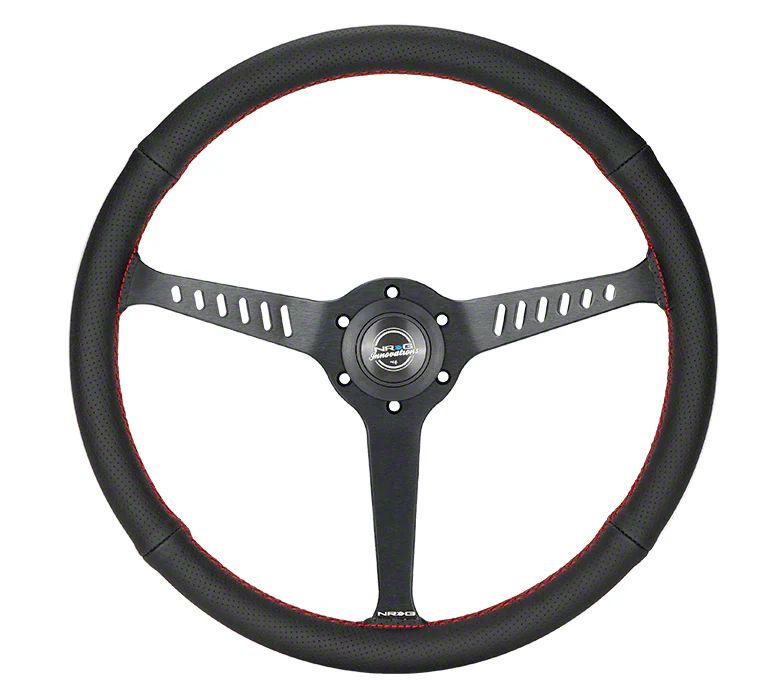 NRG Innovations Classic Stealth 380mm Steering Wheel; Perforated Leather with Red Stitching