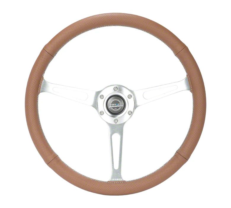 NRG Innovations Classic Wood Grain 380mm Steering Wheel; Perforated Brown Leather