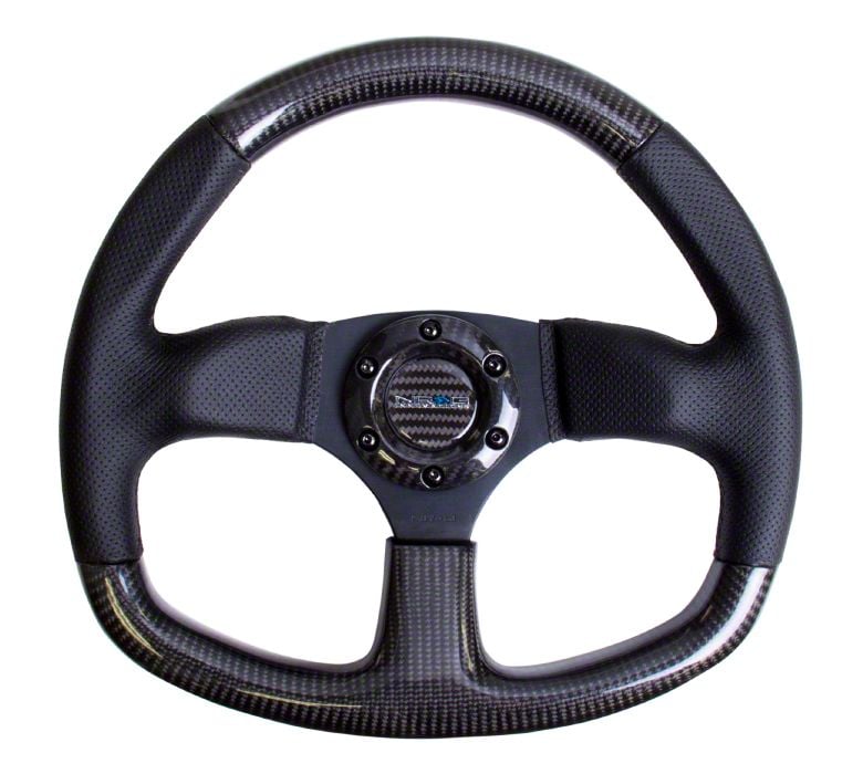 High-Performance Flat Bottom Steering Wheel. The NRG Innovations Flat Bottom 320mm Carbon Fiber Steering Wheel offers superior handling and a stylish upgrade for any vehicle interior. Its ergonomic flat-bottom design enhances steering response while delivering a race-inspired feel. This steering wheel ensures better grip and control, making every drive more enjoyable and precise.