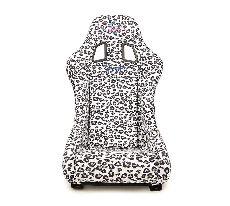 FRP Bucket Seat PRISMA- SAVAGE Edition with white pearlized back. Snow Leopard Color Leopard print finish in vegan material plus phone pockets. (Medium)