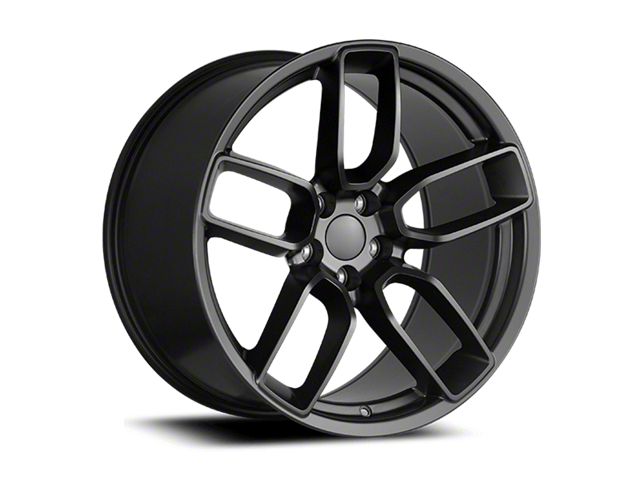 The 20x11 OE Concept Challenger SRT Replica Satin Black Wheel; Rear Only; 20x11; 20mm Offset is completed in a satin black finish that will make everyone green with envy. This wheel features a durable clear coat that is tough enough to stand up against the hazards of everyday driving.