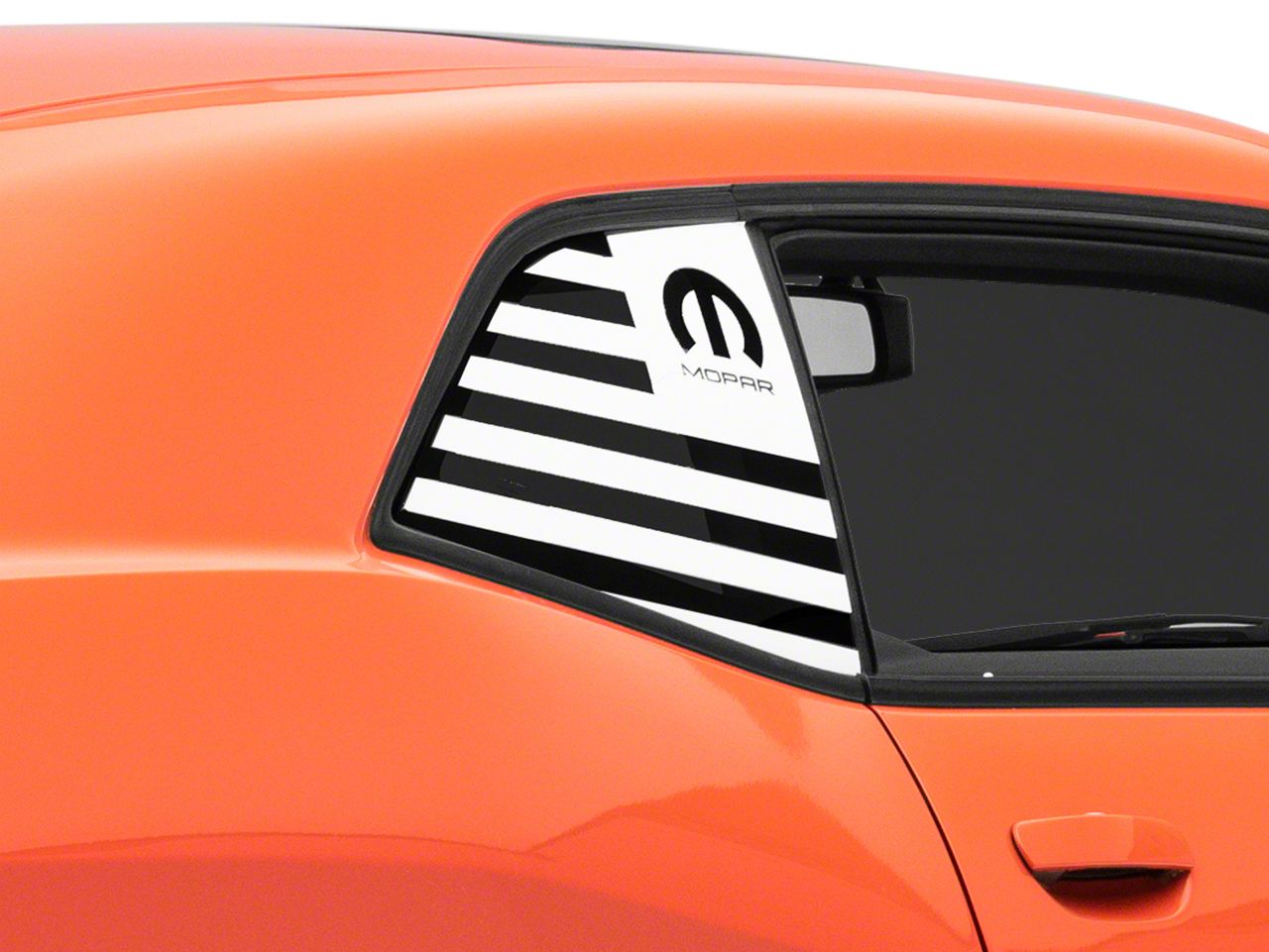 Application. These Officially Licensed MOPAR Mopar Flag Quarter Window Decals; White are designed to fit 2008-2013 Dodge Challenger models.