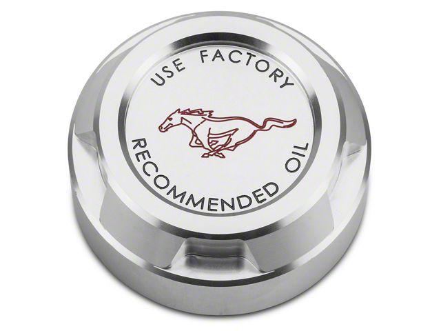 Impressive Styling. Enhance your S550's engine bay appearance by upgrading the black factory oil cap with this billet aluminum Scott Drake Oil Cap Cover with a Running Pony Logo. Fully licensed, this handsome cap installs easily to give your pony a more show worthy appearance. The Oil Cap Cover features a Ford Pony logo and a reminder to "Use Factory Recommended Oil" in black text for a unique accent. It installs easily and can be used alongside an aluminum dipstick handle or washer fluid cap for a custom, race inspired look.