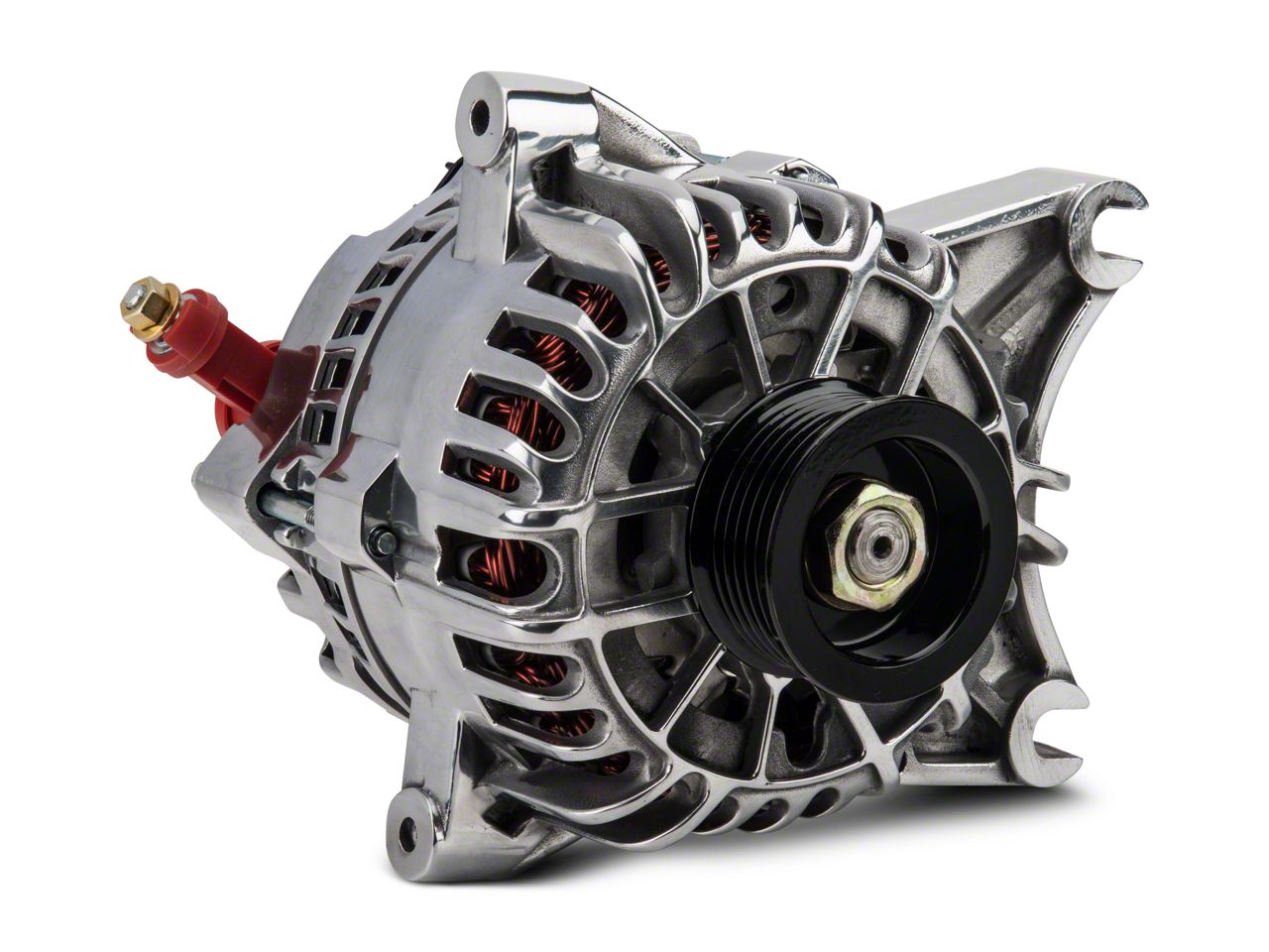 Bright Polished Finish. This PA Performance Alternator is completed in a durable bright polished finish for great show car looks and long lasting corrosion resistance.