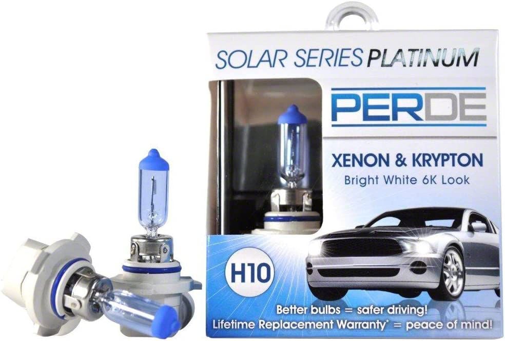 Enhanced Lighting Performance. The Perde Solar Series Platinum Xenon-Enhanced Halogen Fog Light Bulbs; H10 deliver brighter and whiter illumination to improve visibility during nighttime and adverse weather conditions. These bulbs generate more light than standard halogen bulbs while maintaining compliance with legal wattage limits, enhancing both safety and style.
