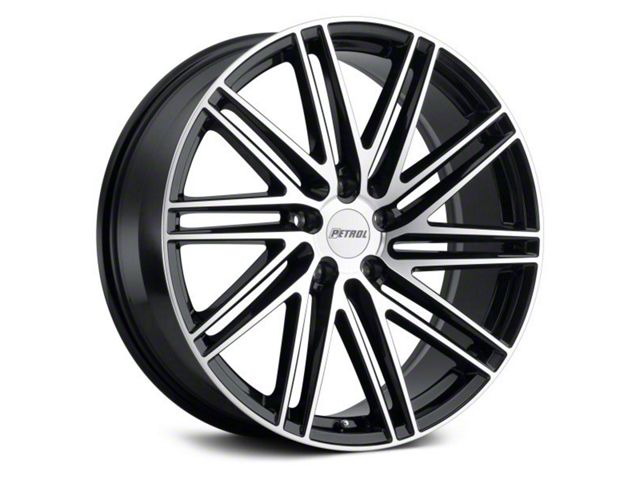 Petrol P1C Gloss Black Machined Wheel; 18x8. The Petrol P1C Gloss Black Machined Wheel offers a striking balance of style and refinement. Its unique design accentuates the vehicle's aesthetic, while the premium construction underscores its robust nature. This wheel is a perfect choice for those seeking both elegance and a strong visual statement.