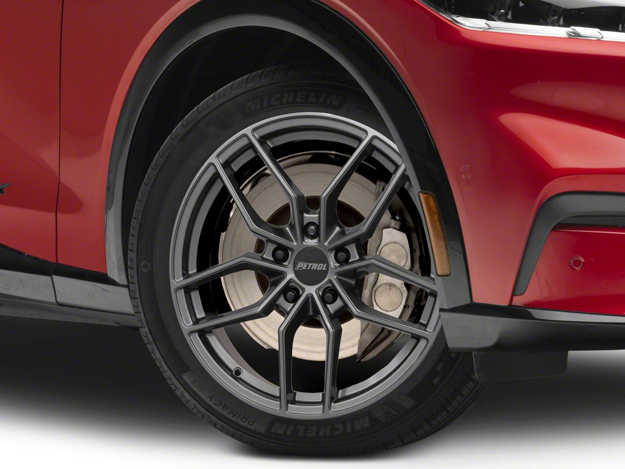 Application. This Petrol P5C Gloss Gunmetal Wheel; 20x8.5, with a backspace of 6.325 Inch, 160.7mm and bolt pattern of 5 x 108mm (5 x 4.25-Inch), ensures proper alignment and stability. It's designed to fit the 2021-2025 Mustang Mach-E models, enhancing both the look and the overall driving experience. Sold individually.