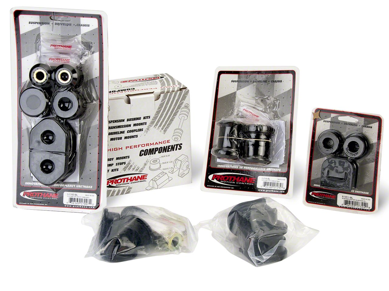 Improves Ride Quality. The factory rubber bushings deteriorate over time causing sloppy handling and poor ride quality, so upgrade your Mustangs suspension with a complete set of Prothane Polyurethane Bushings for more responsive handling and better overall driving performance.