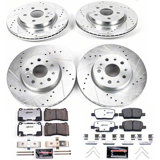 Complete Kit. This PowerStop Z26 Street Warrior Brake Rotor and Pad Kit comes complete and includes (2) Front Rotors and (2) sets of Front Brake Pads as well as (2) Rear Rotors and (2) sets of Rear Brake Pads. The Kit also includes all the required hardware needed for installation on your vehicle's original factory calipers.