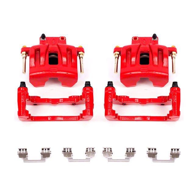 Durable, Reliable Construction. The calipers and brackets included in this set were re-manufactured in Chicago. These old components were given new life with brand-new premium boots, seals, bleeder screws, pins, and hardware. Afterwards, they undergo rigorous testing to ensure that they are safe to use and leak-proof. The final stage is the powder-coating process, in which the calipers are sealed in an irresistibly eye-catching candy red shade that not only improves their look, but also their resistance against corrosion.