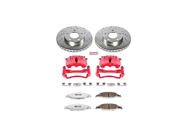 Reliable Material Selection. All the different rotors, calipers, and other braking components in this kit are built to last. The calipers are powder-coated an attractive red color to make them stand out and prevent weathering. The rotors are protected with a dependable zinc plating that can withstand years of abuse. The brake hardware is formed from stainless steel, and the brake pad backing is made of the same material. Overall, this kit is designed for long-term performance.