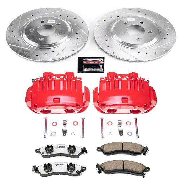 Long-Lasting Brake Components. Brake effectively while using this Mustang Z26 Street Warrior brake kit for the front-end of your Mustang. This product includes rotors, calipers, and brake pads that offer more performance than the stock braking components do. The parts are made to fit the front-end of your vehicle for even better results.