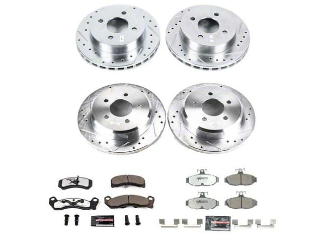 Impressive Front and Rear Brake Rotor and Pad Kit. This kit comes with (2) front brake rotors, (2) rear brake rotors, and (8) brake pads. All the necessary installation hardware, as well as high-temperature hardware, are also included in the kit.