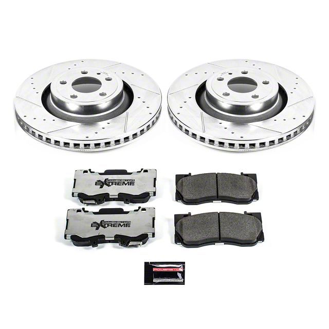 Track-Ready Performance. Whether you are smoking the track or just on your casual drive, these PowerStop Z26 Street Warrior Brake Rotor and Pad Kit; Front will stop your Mustang reliably with little to no noise or dust. Expertly crafted and meticulously tested, it features optimal iron cast rotors with a drilled and slotted surface for sufficient heat dissipation. Additionally, the stainless steel shims and the Z26 pads utilize a ceramic carbon fiber blend to minimize dust out put and reduce screech, even in sudden stops.