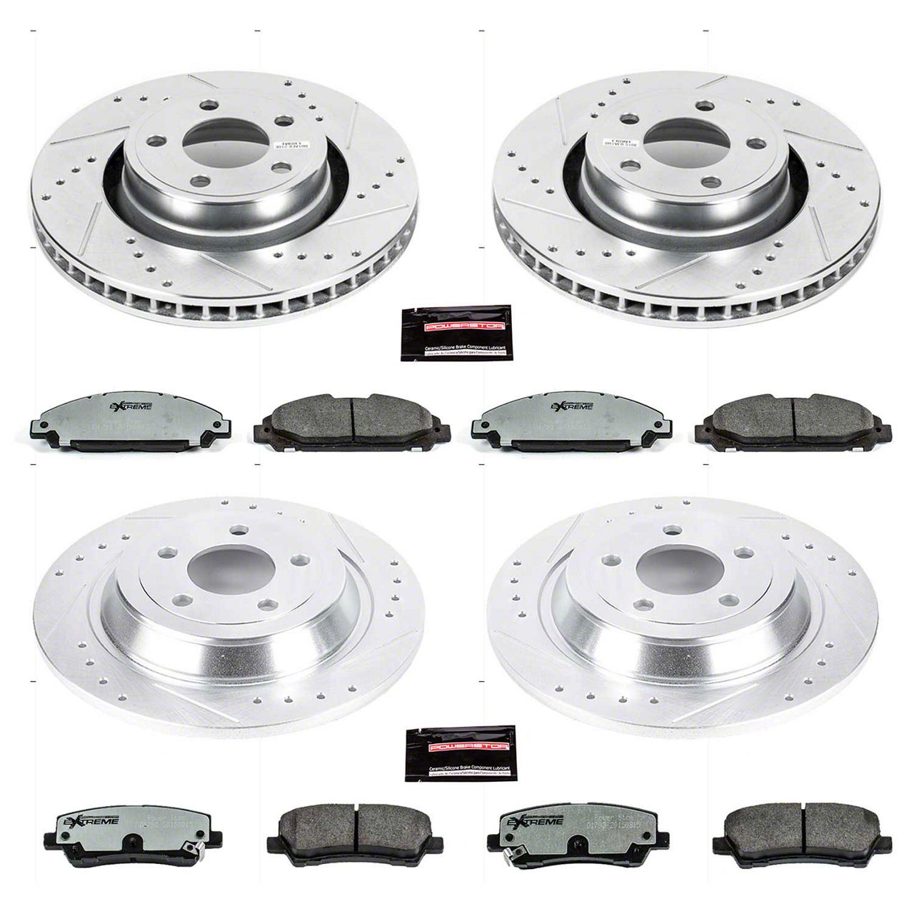 Complete Front and Rear Brakes. This PowerStop Z26 Street Warrior kit is a complete front and rear brake set. It includes 2 front rotors, 2 rear rotors, and front and rear brake pads. It also comes with all the hardware required for installation on your Mustang’s existing calipers.