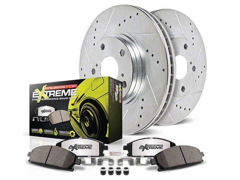 Unparalleled Brake Performance. Built to enhance the braking power of your Ford Mustang, the PowerStop Z26 Rear Brake, and Rotor Pad Kit is cheap and highly effective. It features carbon-fiber-infused ceramic pads and cross drilled slotted rotors that offer 20% more braking power on the street.