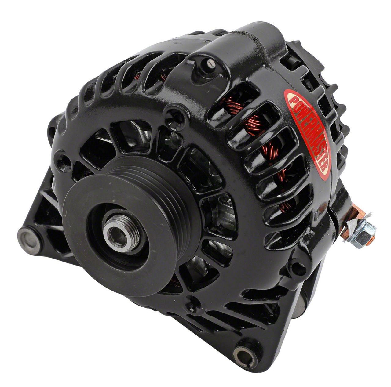 High-Output Alternator. The Powermaster CS130D Style Saddle Mount Alternator with 6-Groove Pulley; 165 Amp; Black is engineered to provide superior electrical charging capacity for your vehicle. It ensures consistent power delivery to your battery and electrical components, supporting high-demand accessories and preventing power loss during operation.