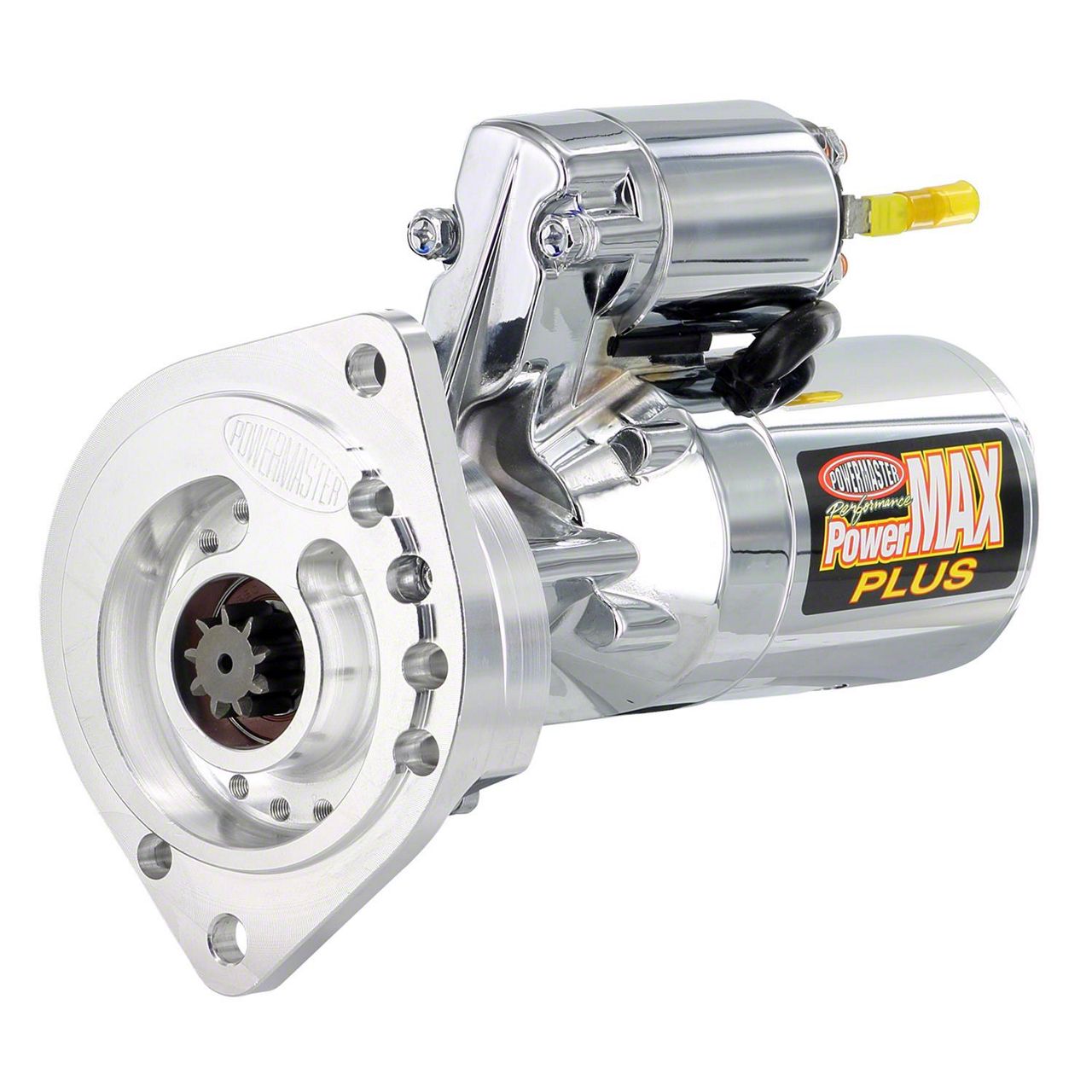 High Performance Starter. The PowerMAX Plus Starter; 14:1 Compression Ratio; Billet Black/Chrome is designed to provide exceptional cranking power for engines with moderate compression ratios. It ensures reliable engine starts, enhancing vehicle performance and usability, and is ideal for high-performance applications requiring clearance for headers and oil pans.