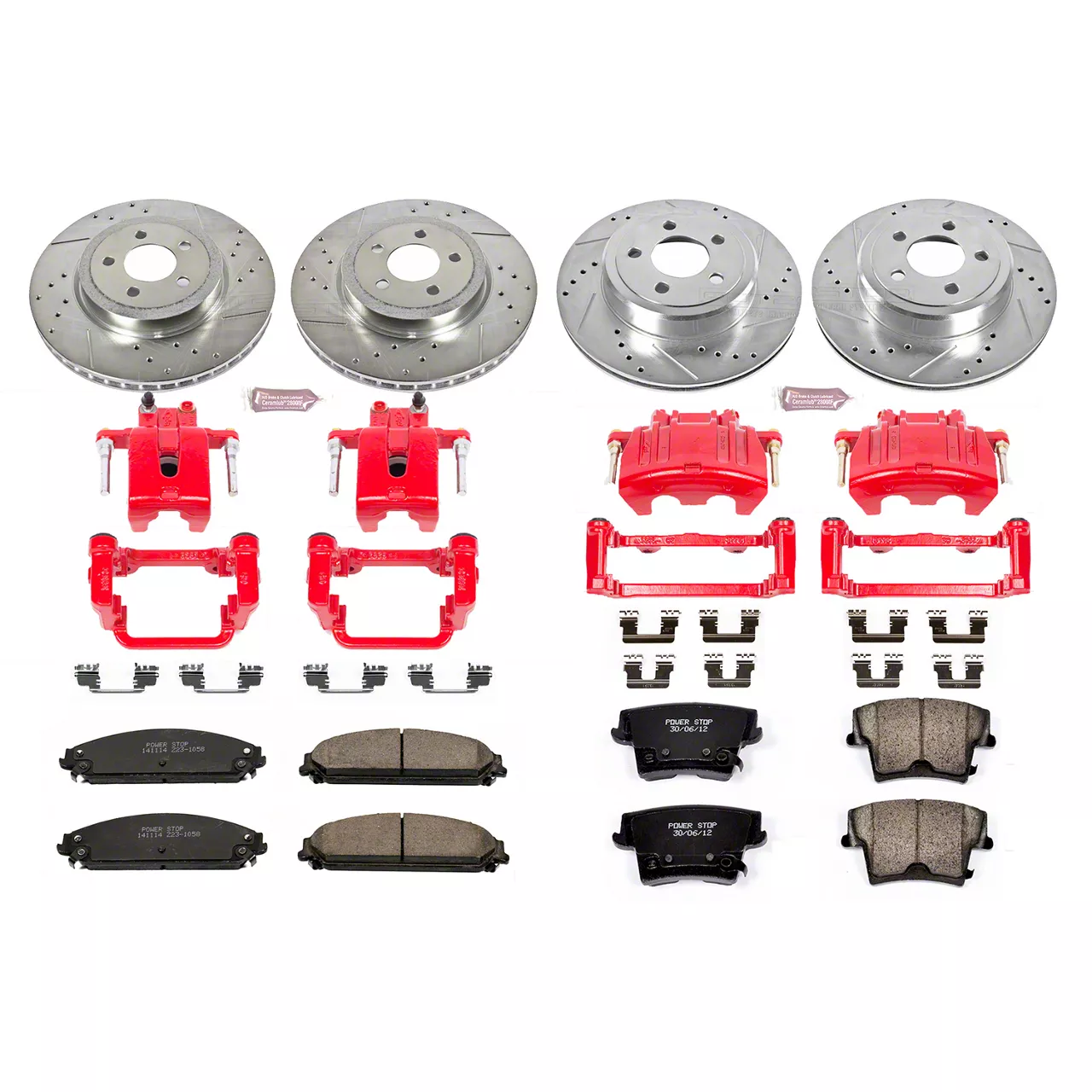 Reliable Stopping. Be safe on the street and track with this PowerStop Z23 Evolution Sport Brake Rotor, Pad and Caliper Kit; Front and Rear on your Challenger. Made for intense and high-speed cruising, this assembly is precision engineered with dual ang single piston design, with a drilled and slotted floating rotor for better cooling and superior traction. It also features the latest Z23 ceramic pads for better break-in.