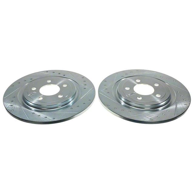 Construction and Features. These rotors are finished with a polished silver look and silver zinc plating for added corrosion resistance. The cross-drilled and slotted design not only improves cooling but also enhances overall braking performance, making them a reliable upgrade for your Mustang.