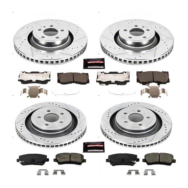 Complete Front and Rear Kit. This kit comes complete with everything you need to upgrade your Mustang's braking, including (2) Front Rotors, (2) Rear Rotors, (2) Pairs of Front Brake Pads, (2) Pairs of Rear Brake Pads, (1) bottle of ceramic brake lubricant and (1) premium hardware kit.