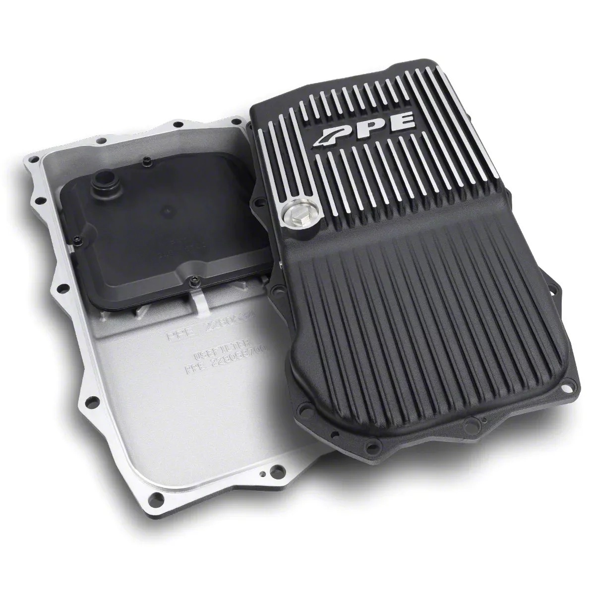 Performance and Durability. The PPE Heavy-Duty Cast Aluminum Transmission Pan (Brushed) is a cutting-edge automotive enhancement designed to elevate your vehicle's performance and durability. Its specialized design incorporates Internal Heat Sinks and External Cooling Fins, effectively reducing transmission oil temperatures and preventing overheating during rigorous driving. With cooler oil maintained, the transmission service life is significantly extended, minimizing maintenance costs and enhancing overall performance.