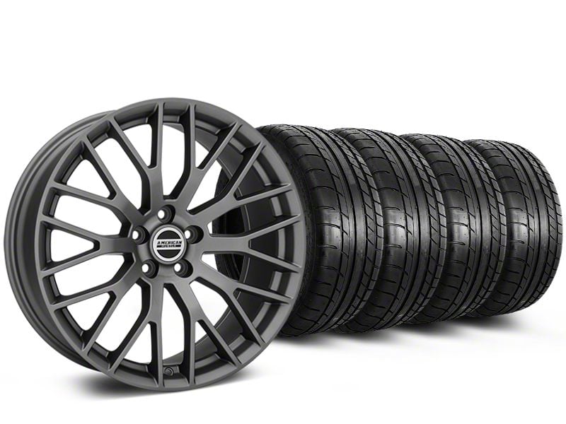 Easy "One Click" Shopping. This standard combo kit features (4) Performance Pack Style Charcoal Wheels – 20x8.5 and (4) Mickey Thompson Street Comp Tires – 255/35R20. This popular Wheel and Tire Kit has been created for the exact specifications of your 2015-2023 Mustang for a guaranteed perfect fit with no rubbing or clearance issues.