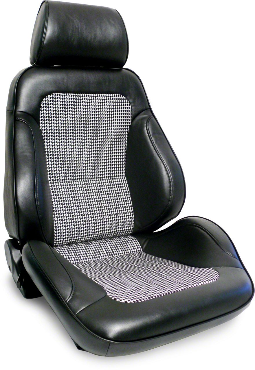 Enhanced Seating Experience. The Procar Rally Reclining Seat is designed to elevate the interior aesthetics and comfort of any vehicle. This passenger side model features a houndstooth insert and vertical stitching, offering both a classic design and improved support for the occupant. Its universal fit design means it can be adapted to a wide range of vehicles, provided that a specific seat bracket is used for installation.