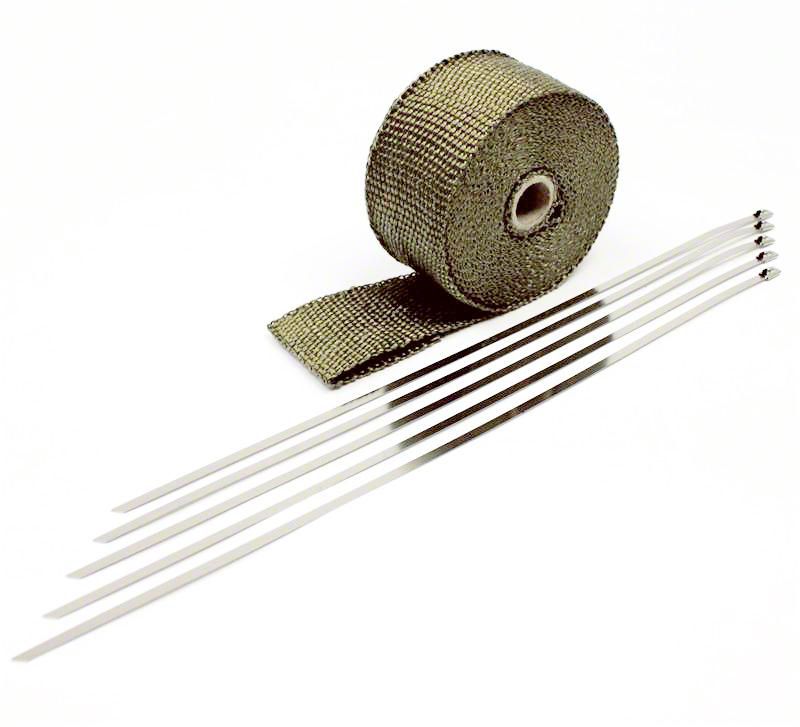 Durable Titanium Roll. This header wrap is made from a tightly-woven, durable titanium roll. It measures 2 Inches x 25 Feet for maximum coverage. It comes with 5 stainless steel zip ties that you can use to secure the wrap to the header. One roll is enough to cover one medium header.