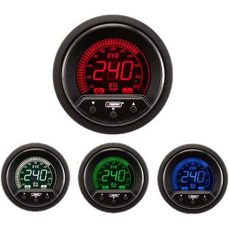 Description. Oil Temperature Gauge; Premium Evo Series; Red And Blue And Green And White; Peak And Warning; 2-1/16-Inch