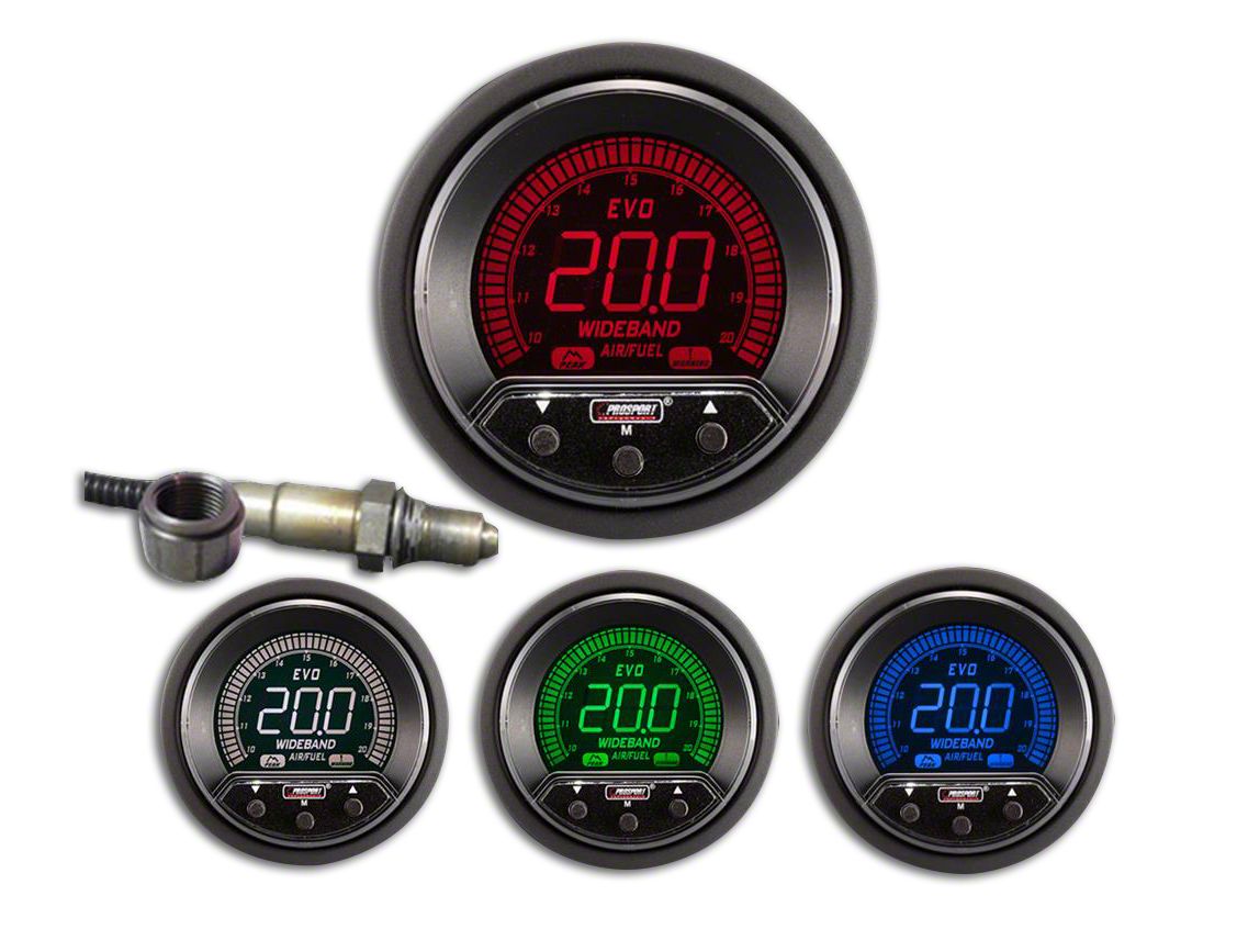 Accurate Reading. Unlike other gauges from competitor companies, prosport Evo series wideband air fuel ration gauge uses 02 sensor Bosch wideband to get the signal and collect information. This guarantees you that you will monitor the way your fuel gauge is before you are stuck in the middle of nowhere. Additionally, the gauge ratio uses LSU 4.9 sensor that reads from a range of 10.0:1 to 20.0:1 AFR readings.