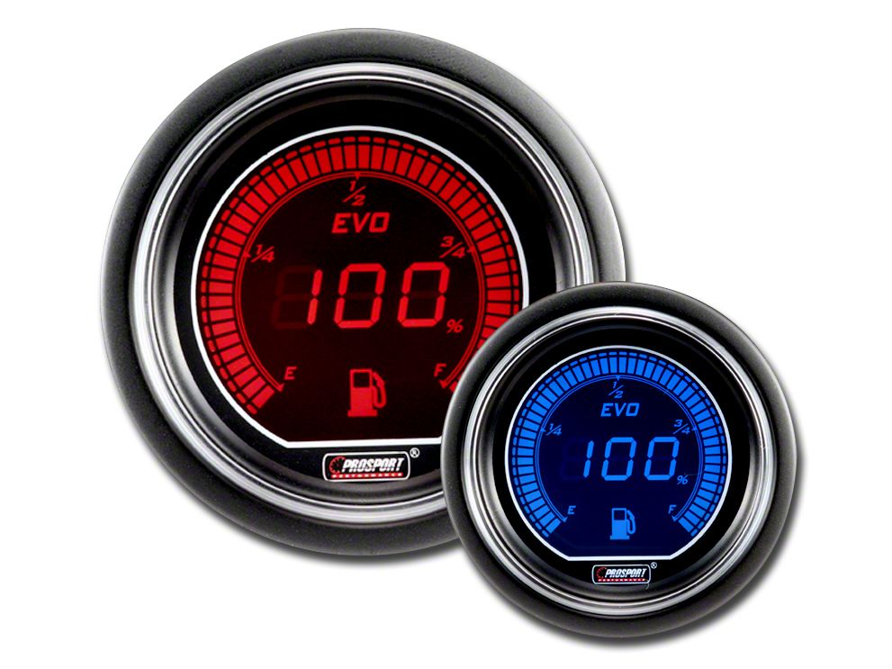 Monitors Fuel Level. Instead of using your boring stock gauge to see how much fuel you have left in the tank, install Prosport's Red and Blue Electrical Dual Color Evo Fuel Level Gauge. A perfect fit for your Challenger, this gauge will allow you to monitor your tank with notations of E, 1/4, 1/2, 3/4, and F featured on the display.