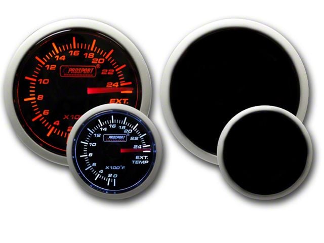Installation. This 52mm Prosport Dual Color Electric Temperature Gauge comes with a mounting cup, visor, pigtail disconnect harness, and instructions. The installation process takes about 2 hours, and it requires some mechanical skills.