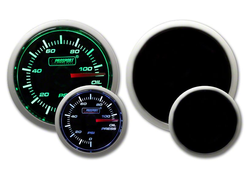 Complements Lighting. Complement the lighting of your vehicle and monitor your oil using this stylish and functional Prosport Dual Color Oil Pressure Gauge - Electrical - Green/White. Featuring a gorgeous green and white interface, this unit allows you to monitor and read your oil pressure levels with confidence. It is compatible with all 2008-2023 Dodge Challenger models.