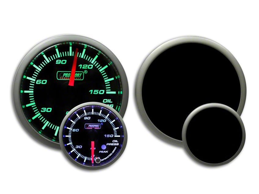 Premium Series Gauge. If you are tired of unreliable factory gauges, try this efficient and easy to read Prosport Dual Color Premium Oil Pressure Gauge. When turned off, the gauge boasts a blacked-out display that lights up in white and green. It also features a red needle for showing the exact oil pressure.