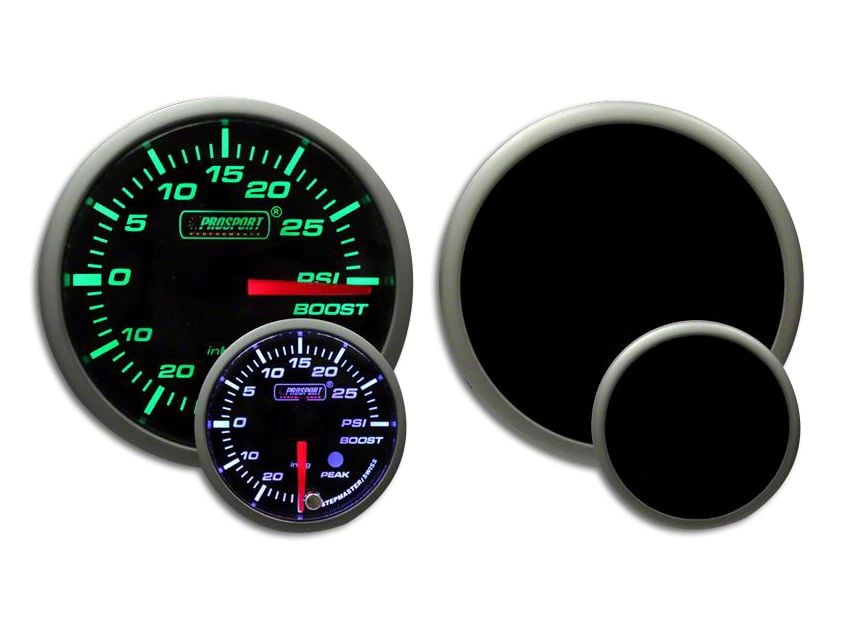 Superb Prosport Precision. Give your Mustang a boost with greater accuracy and precision with this Prosport Dual Color Premium White Pointer Boost Gauge. With its fully programmable and warning features, along with its clear dual color display, you can quickly tailor-fit your driving with ease.
